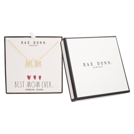 Rae Dunn MOM station necklace in yellow gold plated sterling silver in BEST MOM EVER gift box